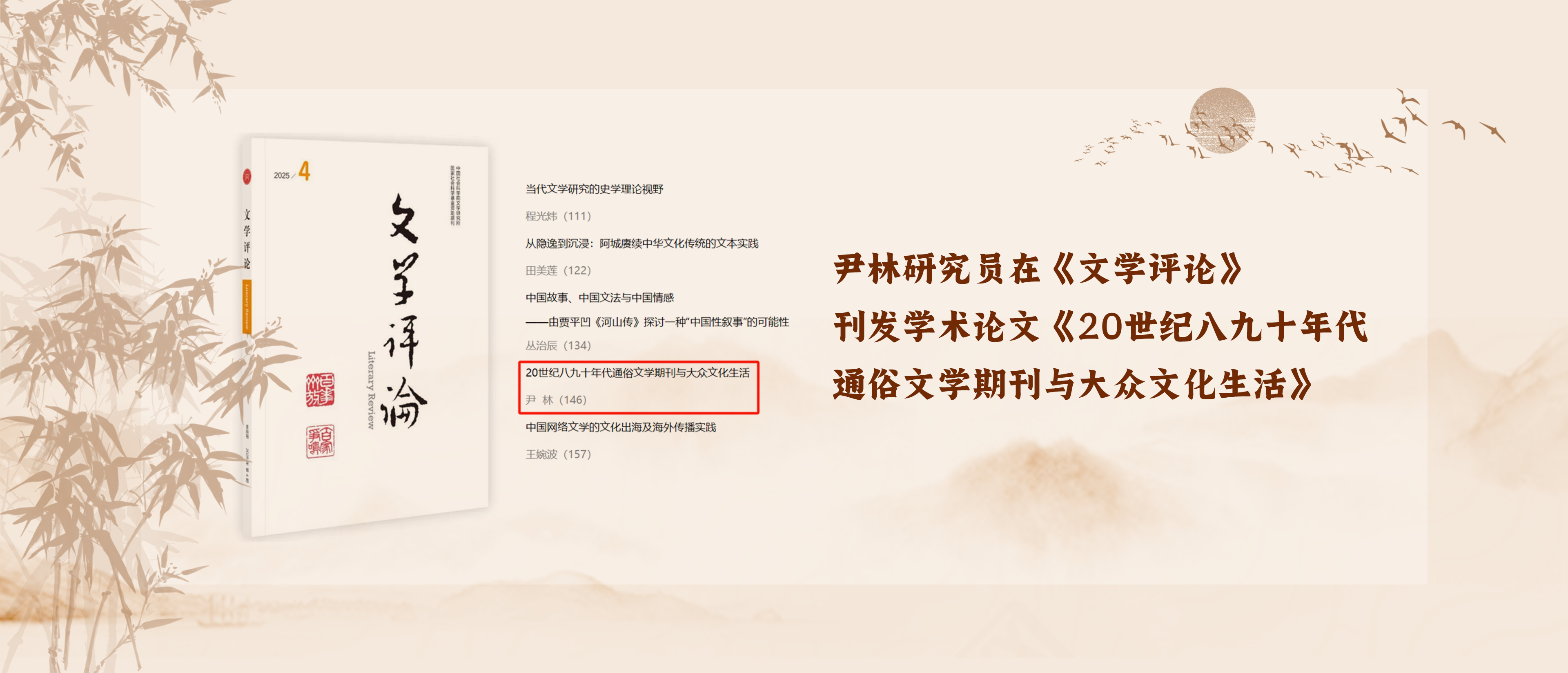 尹林研究员在《文学评论》刊发学术论文《20世纪八九十年代通俗文学期刊与大众文化生活》设计:郭俊清供图:宣传部